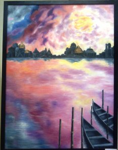 | ”Temple Silhouette” Medium : Oil on Canvas Size: 34 ” x 45″ Purchase |