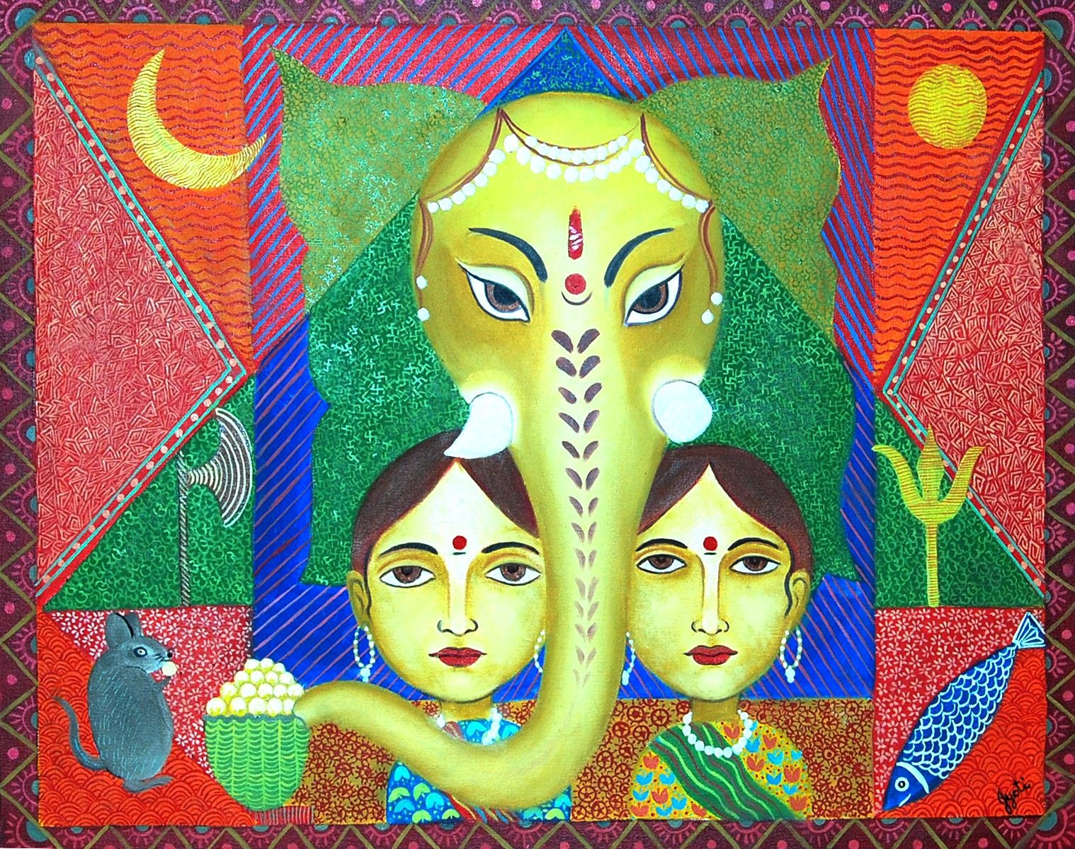 ”Ganesha with Ridhi-Sidhi (Folk)”